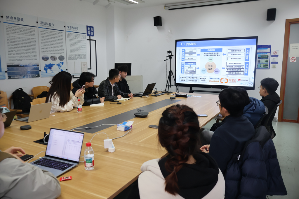 智能交通实验室向同学们展示了交通组网的宏伟远景——一个无所不在的“天眼”,实时观察路面的最新情况,为司机出行保驾护航。虽然同学们的专业横跨车辆工程、新闻传播、具身智能、法律等,但在座谈环节,大家总能提出让人眼前一亮的好问题,如类脑计算的通用性,人工智能在社会治理层面的应用等。在后续企业参观环节,通过实地感受AI大模型在生产中的应用并亲身体验,同学们对于这些问题有了进一步的认识。